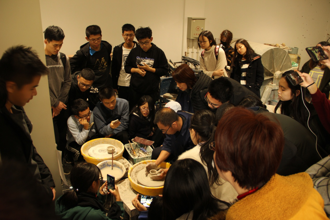 同学们在制瓷师傅的示范下了解制瓷工艺各环节