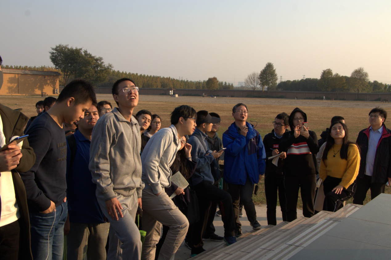 休息整顿过后,下午3时,师生一行来到殷墟王陵遗址。王陵遗址位于安阳洹河北岸侯家庄与武官村北高地,东西长约450米,约250米,总面积约11.3公顷,分东西两区。岳老师利用陵区入口的平面图,详细介绍王陵的布局结构和挖掘现状,随后参观 “殷墟王陵区M259、M260陈列”, M260位于殷墟王陵区东区南部,1984年9月12日由中国社会科学院考古研究所安阳工作队发掘,墓呈“甲”字形,墓道在墓室南部,呈坡状,墓室为一长方形竖穴坑。墓室底有一腰坑,内有一人一大玉戈。在墓室西北角填坑内有8把木锨。1939年M260中出土司母戊大方鼎,显示出墓主人身份的尊贵,而墓主人究竟为何人,是殷墟考古的课题之一。对于同学较为好奇的商人丧葬礼俗,岳老师解答,商人尚无合葬习惯,平民多为异穴合葬,商人实行“一夫一妻制”或“一夫一妻多妾制”,夫妻关系较为松散,反倒妻与子关系较为稳定。