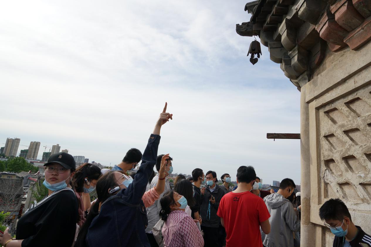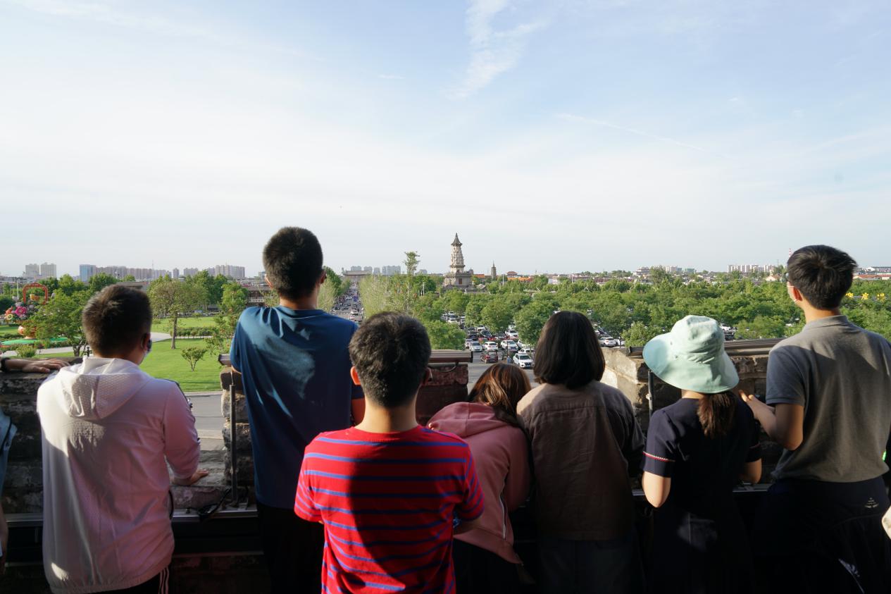 来到正定古城墙的南城门,师生一行进入瓮城。在瓮城内,同学们发现城门楼是斜的,李明老师解释这是为了防止敌人从下方射的箭射到城墙上,是有意为之。而且瓮城的大门和里城的大门不在一条直线上,这是为了防止敌人攻破瓮城后直驱里城。