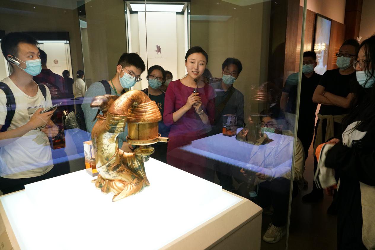 (贾老师为同学们讲解错金银虎噬鹿屏风底座)