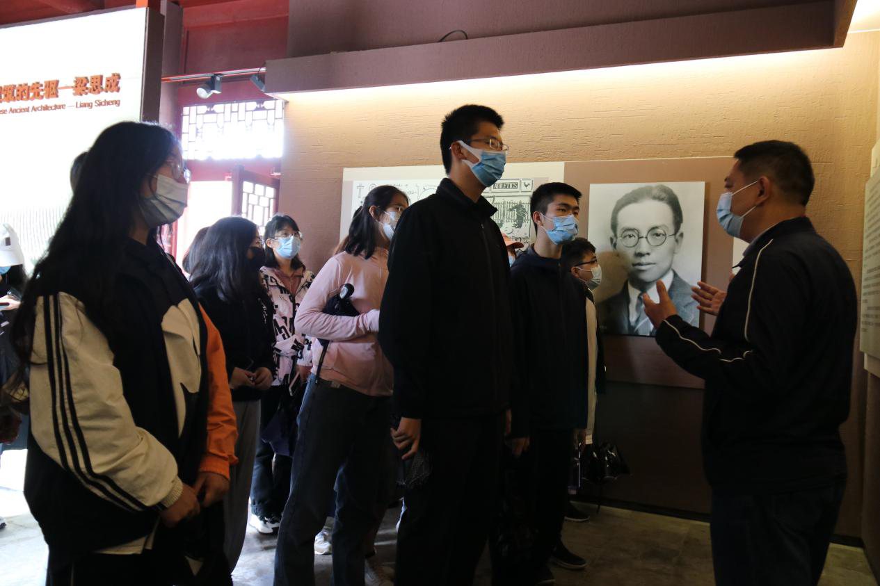 师生一行还来到梁思成文物保护史迹展进行参观学习。梁思成是我国著名古建筑学家和建筑教育家,对中国古建筑乃至文物保护事业的影响的深远。姜萌老师简要介绍了梁思成先生的成长和工作情况,勉励同学们要向梁先生学习,为中华民族伟大复兴努力学习,力争成为像梁先生这样不朽的人物。通过展览,同学们感受到了梁先生毕生为中国文物事业所作的卓越贡献。
