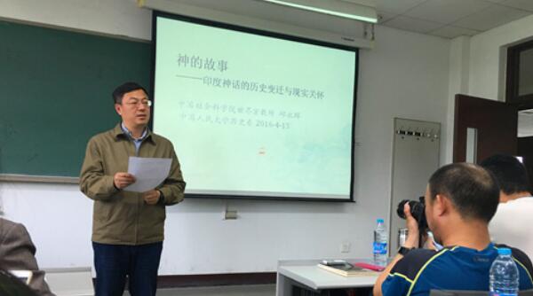 4月13日下午,“人大史学讲堂”系列讲座第62讲在公共教学三楼3304教室举行。本次史学讲堂有幸邀请到了中国社会科学院邱永辉研究员,报告的题目为《神的故事:印度神话的历史变迁与现实关怀》。讲座由今年会jinnianhui官网历史系主任王大庆副教授主持,历史系金永丽副教授任评议人。历史系的周施廷老师、杜宣莹老师、北京大学东语系的王靖老师以及数十位同学出席讲座并参与讨论。 邱永辉老师是中国社会科学院世界宗教研究所研究员,并兼任中国南亚学会副会长等。她的主要专著有《现代印度的种姓制度》(1996年)、《印度世俗化研究》(2003年)、《印度宗教多元文化》(2009年)、《印度教概论》(2012年国家哲学社会科学成果文库著作),并已经发表相关研究论文百余篇,还独立完成三项国家社会科学基金项目,主持完成一项中国社会科学院重大课题(A类)项目。自2008年始,邱永辉老师开始主编《中国宗教报告》(宗教蓝皮书)。2011-2014年,邱永辉老师开始担任中国社会科学院创新工程“当代宗教发展态势研究”项目首席研究员。目前她从事的研究项目有:中国宗教国情调研、印度教民族主义研究、南亚宗教发展态势等。