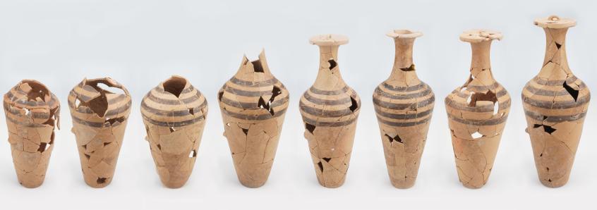 遗址出土的一组带盖塞彩陶平底瓶
