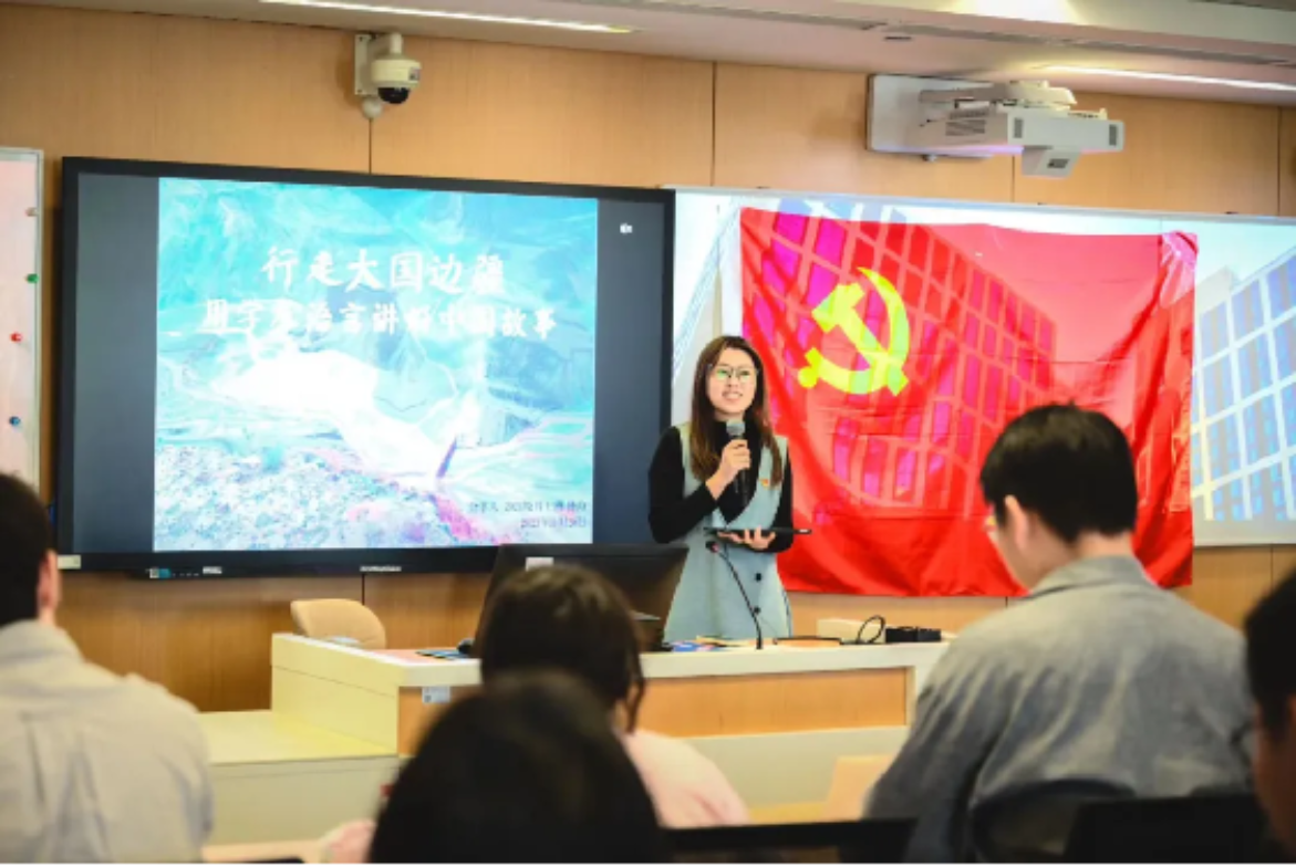 大国边疆师生实践团成员代表陈路介绍了大国边疆工程,通过皮山数字经济产业园、克州阿图什市女性家政服务和阿勒泰哈巴河县屯垦戍边建设三个案例展示队员在实践调研过程中的体会感悟,最终发展到从学术角度出发思考社会问题,更好地理解社会实践并进行反思。她认为,人文学科要重视实践,在感知环境人文的基础上进行文本重建。