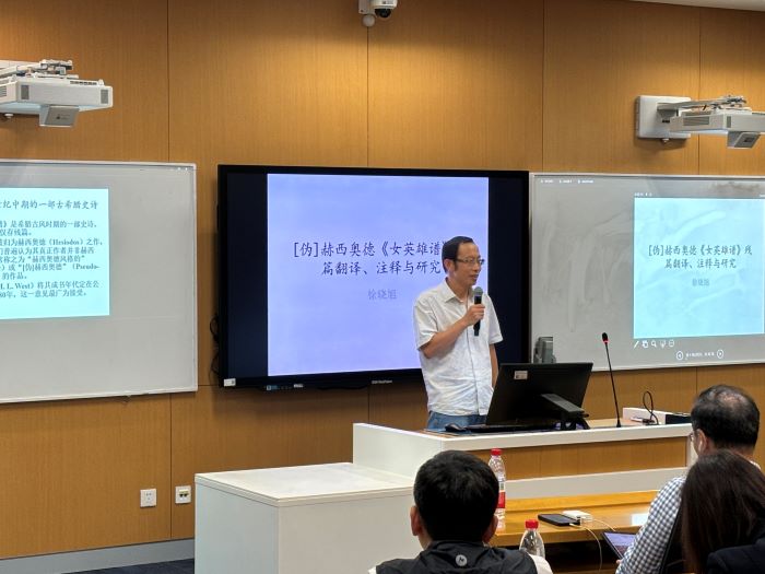 会上,学院邀请了六位国家社科基金项目负责人进行了项目介绍与经验分享。孟宪实教授介绍了“今年会官网藏唐代西域出土文献整理与研究”项目,强调充分利用本校优势资源对于项目申报与学术研究的重要性。曹刚华教授介绍了“中国佛教方志研究与数据库建设(多卷本)”项目的总体情况,主要分享了项目最新研究进展,并与参会老师分享了项目申报与完成过程中宝贵的经验教训。世界史学科徐晓旭教授汇报了其“古希腊语史诗《女英雄谱》残篇译注与研究”项目研究情况,着重对项目课题的主要内容进行了细致介绍。陈胜前教授汇报题目为“新时代中国特色考古学理论体系研究”,主要围绕其研究的中心问题展开,即如何建立新的考古学理论体系,并分析了可能性与可行性。李梅田教授汇报了其“隋唐五代壁画墓与中古文化变迁研究“项目,提出在考古学中引入新的角度与方法,如“死亡考古学”、“过渡礼仪”等。韩建业教授汇报了其“欧亚视野下的早期中国文明化进程研究”项目,介绍了项目的基本情况和实施过程,并对阶段性成果与预期成果进行了展示说明。