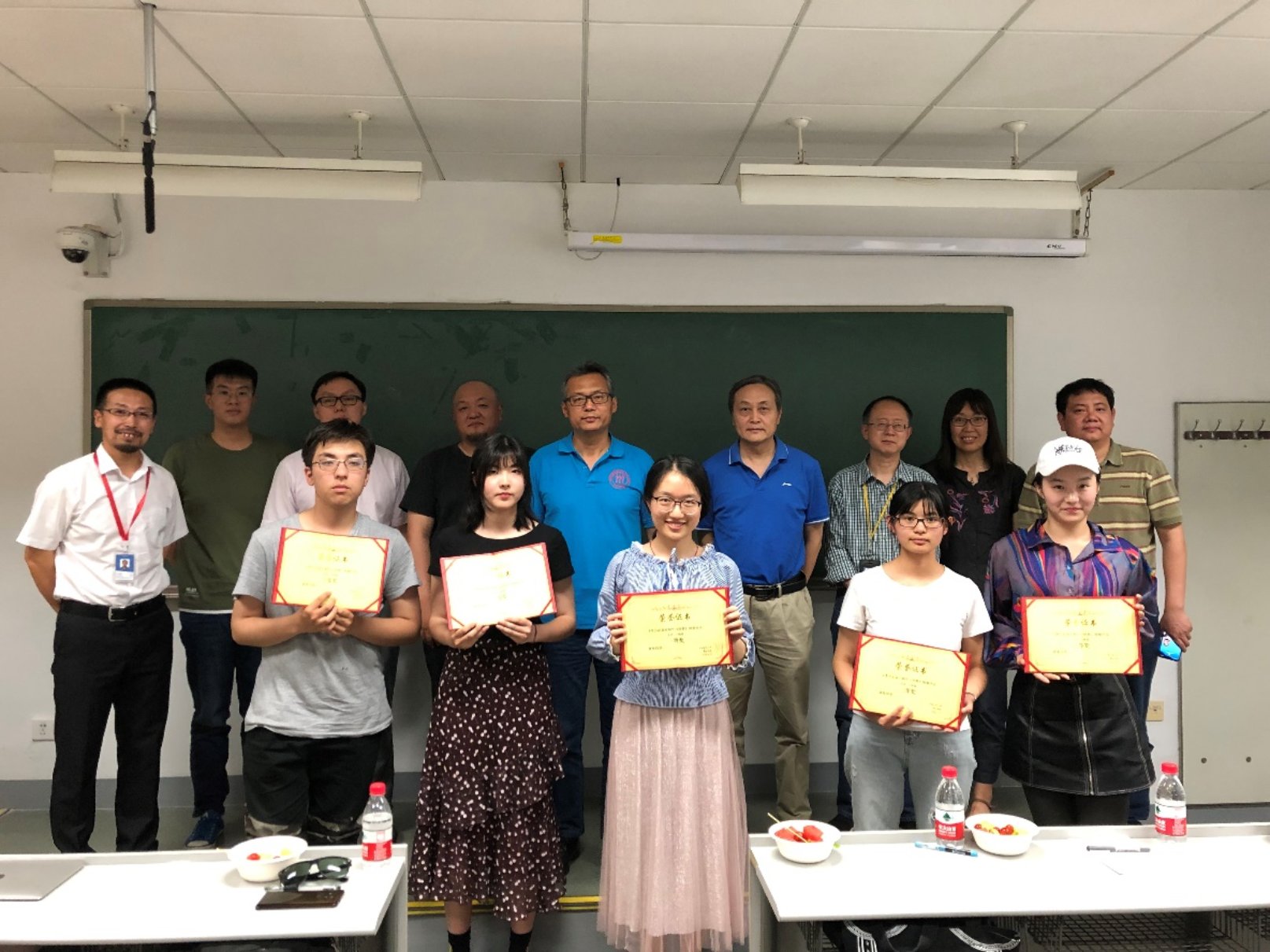 展播大会上获奖学生与评委在一起