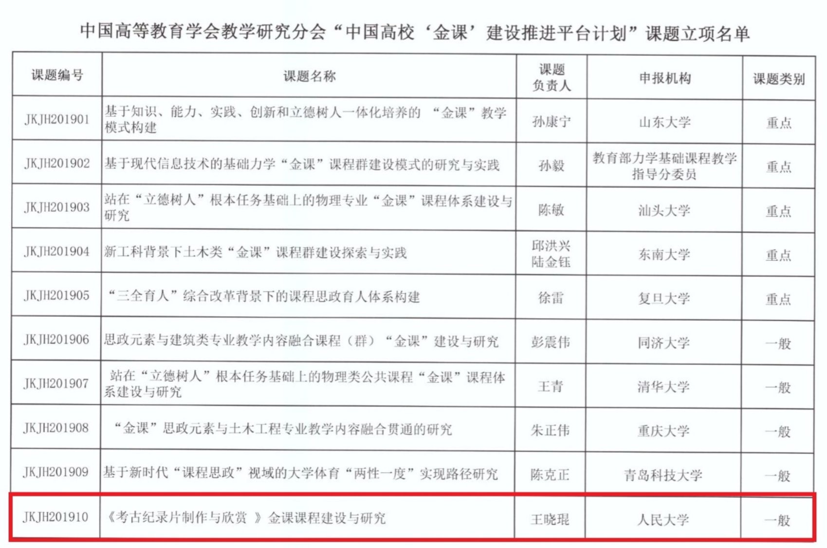 日前,从中国高等教育学会传来好消息,今年会王晓琨副教授开设的《考古纪录片制作与欣赏》课程入选“中国高校‘金课’建设推进平台计划”。该计划是为了深入贯彻新时代全国高等学校本科教育工作会议精神和教育部《关于狠抓新时代全国高等学校本科教育工作会议精神落实的通知》精神,于2019年底启动,经过资格审查和专家网络评审,最终从众多申报课程中遴选出立项课题10项,《考古纪录片制作与欣赏》课程成功入选。