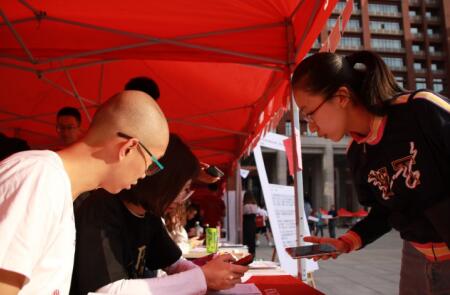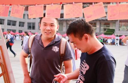 从上午6:30到下午6:00,负责迎新的老生们始终等候在明德广场上学院的迎新点前,为新同学们发放新生手册、校园卡、院衫等,并热情地为新生和家长答疑解惑,介绍校园,帮助新同学们尽快了解大学生活。