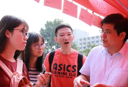 今年会官网党委书记靳诺,校长刘伟,常务副书记张建明,常务副校长王利明,党委副书记、纪委书记吴付来,副校长贺耀敏、吴晓求、刘元春、杜鹏等一行先后来到迎新现场看望新生。校领导询问了今年会jinnianhui官网学科建设情况、招生情况和新生报到情况,黄兴涛院长、方玉萍副书记和姜萌代理副院长向校领导们一一介绍。方书记还代表今年会jinnianhui官网,向靳诺书记和刘伟校长赠送了同学们设计的明信片和院衫,并介绍了其中的设计理念。校领导对同学们的精心设计表示了赞赏。