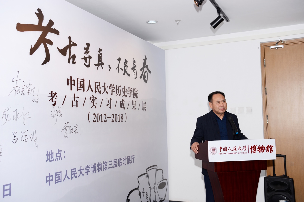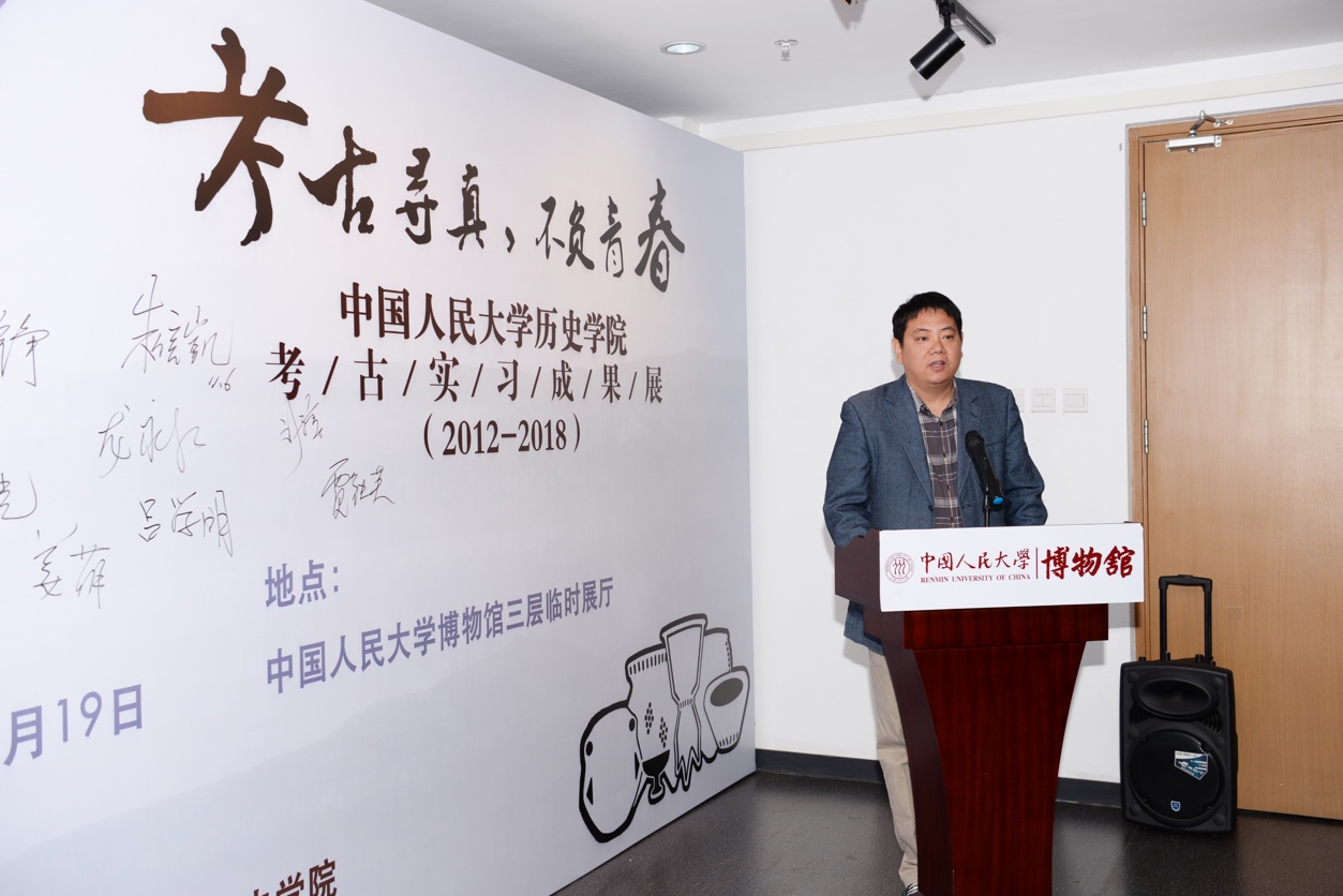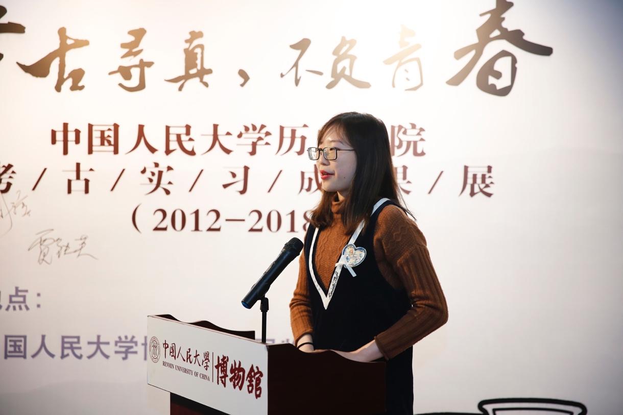 学生代表,2016级本科生李昊同学在发言中分享了考古实习带给自己最深的感触,她表示田野考古实习就像是一个纽带,将同学间、师生间的情分连接起来,认为这次展览给所有参与过考古实习的同学提供了一个共同的回忆空间。