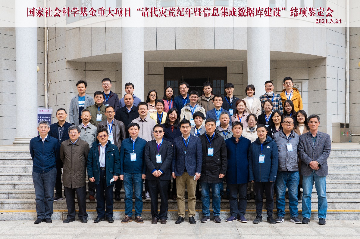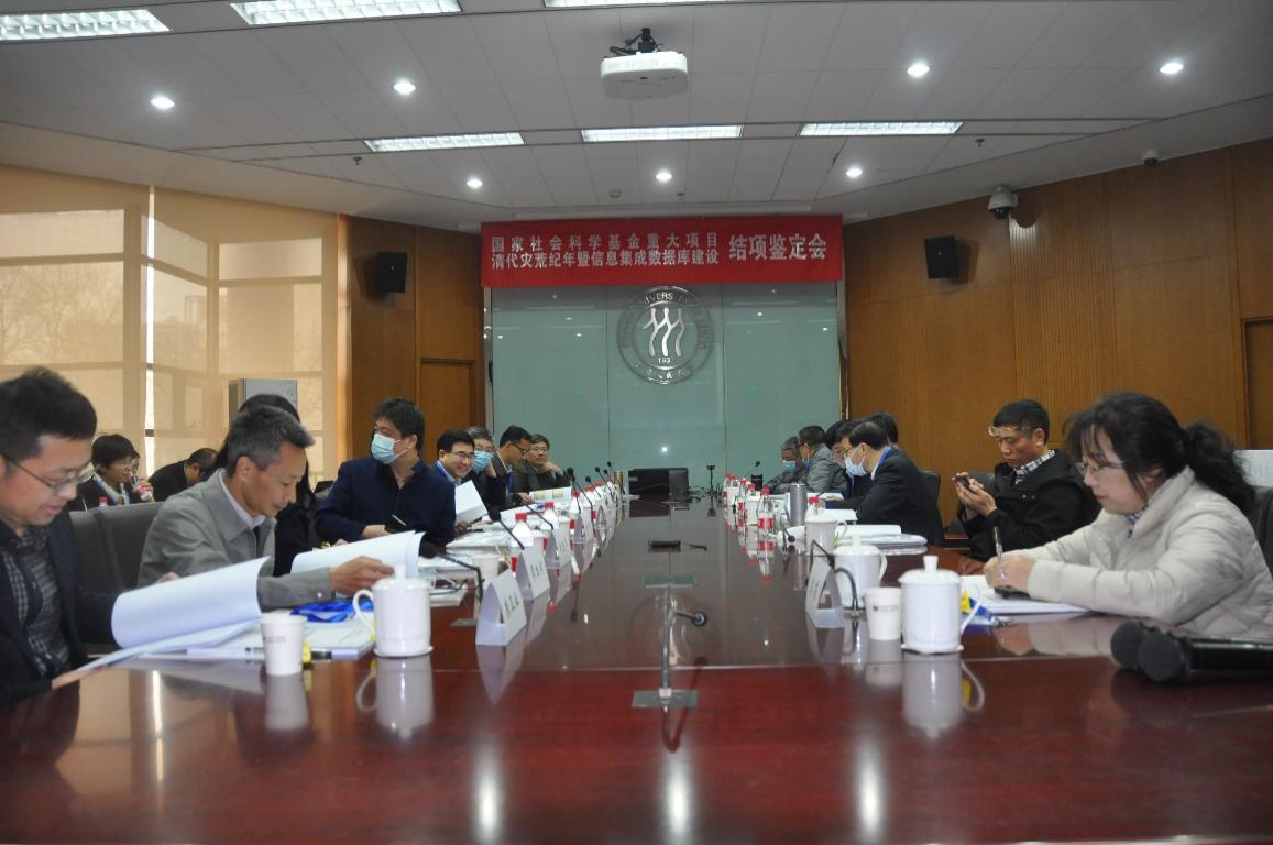 在认真听取课题组的情况介绍并审阅课题阶段性成果和最终成果后,鉴定专家对课题进展情况及存在问题作了点评。龚胜生教授用“大、全、高、远、多、特”六个关键字概括了本课题的学术成就。王社教教授同样用“全、细、实、清、便、新”六个关键字高度评价了课题组的工作。其他鉴定专家均对他们的总体评价表示赞同,一致认为课题起点高、标准高,目标远大、做法扎实,是一项谋划周密的系统性工程,推出了一批相互联系又各有特点的研究成果,很好地完成了预期目标。课题研究坚持自然与人文相结合、文献整理与数据库建设相结合,抓住了灾害本质与时代特征。他们表示,本课题注重史料的实用性、翔实性和全面性,对所用资料均进行了比较严格细致的考订校核,并制定了科学合理的录入规范和信息提取规程。《清代灾赈史料长编》《清代灾荒纪年》资料充实、内容全面、不乏新见,清代自然灾害信息集成系统结构清晰、用法简明、功能多样。课题组注重研究的公共性、普惠性、传承性,及时将研究成果和主要经验公诸学界、惠及学林,为今后学界在相关领域的研究探索了进路、提供了便利。同时,课题组通过对我国减灾文化的系统挖掘和深入研究,致力于把课题研究融入国家应急管理体系建设和“平安中国”战略,努力凸显课题的应用价值和现实意义,具有较高的政治站位。课题组还把项目建设与人才培养有机结合,培养了人才、带出了队伍,使课题研究得以薪火相传、后继有人。所有鉴定专家对课题组长期从事基础史料整理和数据库建设以及从中体现出来的甘愿“为他人作嫁衣裳”学术情怀印象深刻,并给予高度评价。