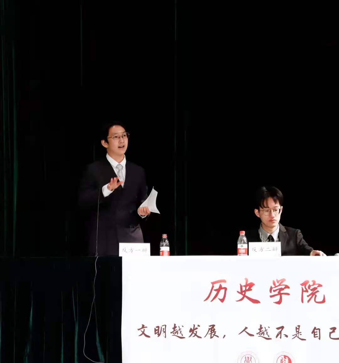在质询环节,反方三辩赵皓玥同学指出了正方立论中忽略的重要事实。在人类技术文明发展的同时,诸如核泄漏等新的问题又随之而来,技术的发展在某些程度上已经突破了人类控制的边界,并为人类带来的新的制约。同时,对于正方以妇女地位提高作为论据来论证人文道德的进步促进了人类的解放,赵皓玥同学依靠扎实的专业知识,明确的点出了历史上的妇女地位实际上经历了一个波浪式的升降过程,并且在许多历史节点,地位提升后的妇女并没有获得比原来更加自由的生存环境,正方所谓“螺旋式上升”的论证并不成立。赵皓玥同学的论述逻辑清晰、步步紧逼,有效拆解了对方论点,及时回扣本方论点。