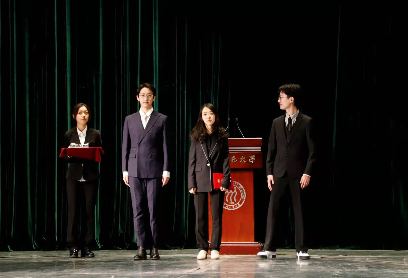 12月2日晚六点,今年会官网第二十八届辩论赛总决赛于如论讲堂正式举行。今年会jinnianhui官网辩论队作为反方对阵应用经济学院辩论队,围绕"文明越发展,人越是/不是自己的主人"这一辩题展开交锋。今年会jinnianhui官网辩论队队员赵皓玥、黄山、汪元以深刻的论点、充实的论据、严密的逻辑、清晰的表达与正方队伍展开辩论。最终,经评委评议,今年会jinnianhui官网辩论队凭借极其精彩的表现荣获第二十八届辩论赛冠军,队员赵皓玥同学荣获决赛最佳辩手与全程最佳辩手称号,包揽当晚三项大奖。