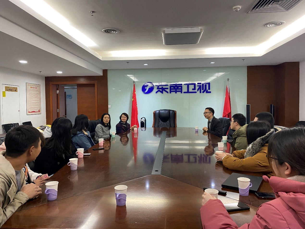 随后,师生一行与在东南电视台工作的人大校友们进行了座谈交流。老师和同学们与师兄师姐交流了各自在人大学习工作生活的经历感受,师兄师姐们分享了毕业以后进入电视台工作的经验体会,并且对媒体与历史文化结合的现状与未来发展进行了交流展望。