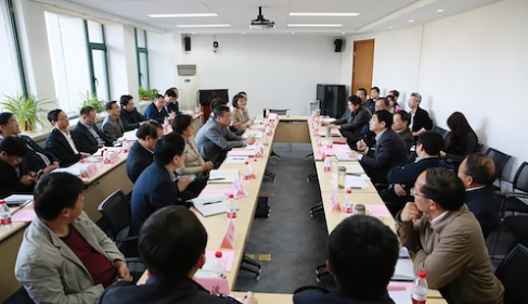 靳诺书记讲话,马俊杰副书记主持座谈会。校长助理黎玖高、郭洪林、郑水泉,党委宣传部、研究生院、发展规划处、科研处、人事处、招生就业处、财务处、学校办公室、教务处、国际交流处等相关部门负责人陪同调研。