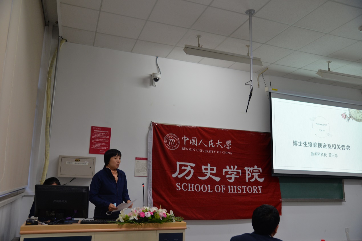 学院教务科科长、博士生教务负责人黄玉琴则介绍了博士生培养的一些具体规定与相关要求。对博士生每个学期的重要工作环节,作了更细致明确的说明,希望同学们能早做计划,合理分配时间,切实安排好博士阶段的学习生活和研究进度。