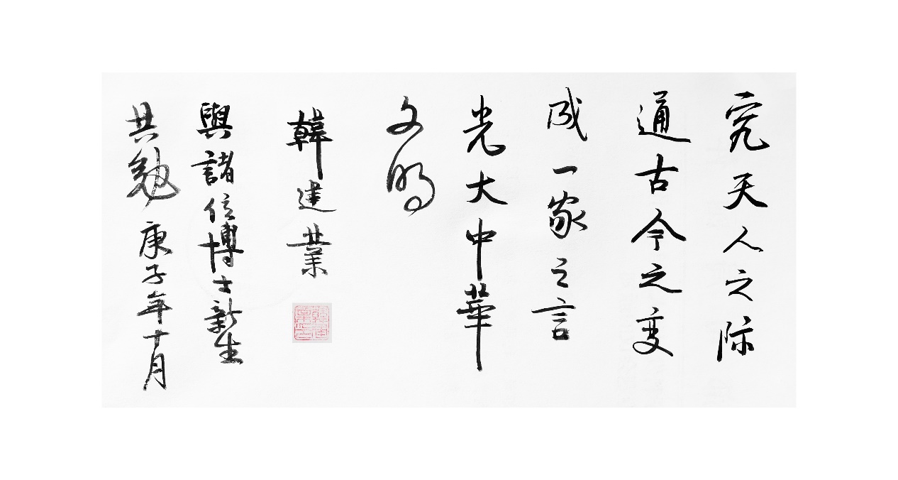 随后,全场出席人员一同观看了博士生导师迎新视频短片。曹刚华、华林甫、刘后滨、刘文鹏、马克锋、张永江、许海云、赵秀荣、陈胜前、李梅田等教授先后“出镜”,表达了他们对博士新生的希望和博士阶段学习的建议;韩建业老师还特意为博士新生题字一幅,表达对新同学的殷切希望和祝福。