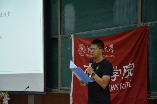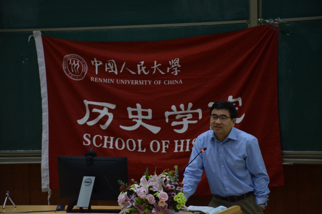 学院党委书记、院长黄兴涛教授代表学院致辞。他首先向新同学的到来表示热烈欢迎,对其有机会进入人民大学学习表示衷心祝贺。他补充介绍了学院中国史学科在秦汉、唐宋、清史和民国等方面的优势地位,世界史学科在希腊罗马史、世界中世纪史和近现代史等方面的厚重实力,以及考古学科后来居上的蓬勃发展态势。强调学院学科门类齐全、科研平台众多,并积极探索生态史学、人文数字史学、公共史学等国际性新兴学科前沿方向,相信同学们能在这片史学沃土找到归属感与认同感。他表示,在全球化和大数据时代,历史学科正迎来发展的时代新机遇,希望同学们能充分利用学院的优质资源与学生成长支持平台,存高远之志,求博深之学,养成可贵的“历史感”,展现读史之人的人文关怀与时代担当。