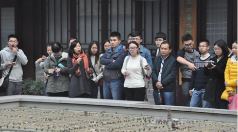 (师生观摩邺城复原沙盘)
