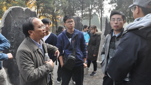 (皮庆生老师和学生讨论碑刻问题)