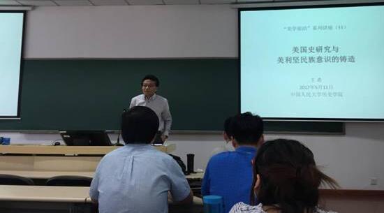 2017年5月11日,北京大学历史学系教授王希老师来到“史学前沿系列讲座”的课堂,带来了一场题为《美国史研究与美利坚民族意识的铸造》的学术讲座。本次讲座由夏明方老师主持,侯深老师担任评议人。