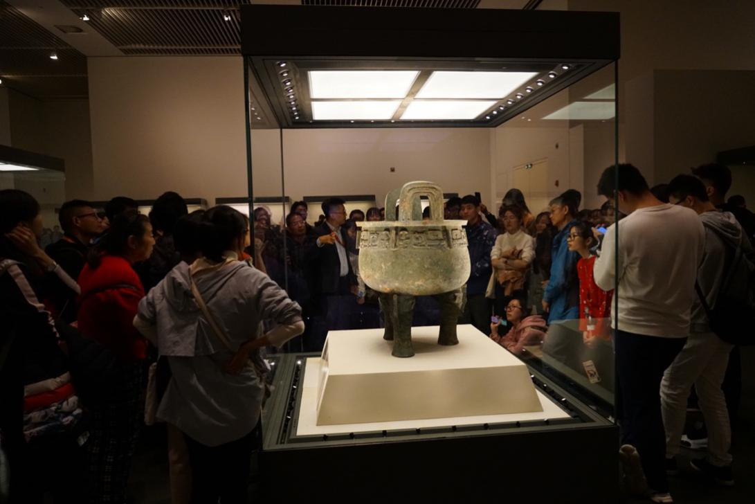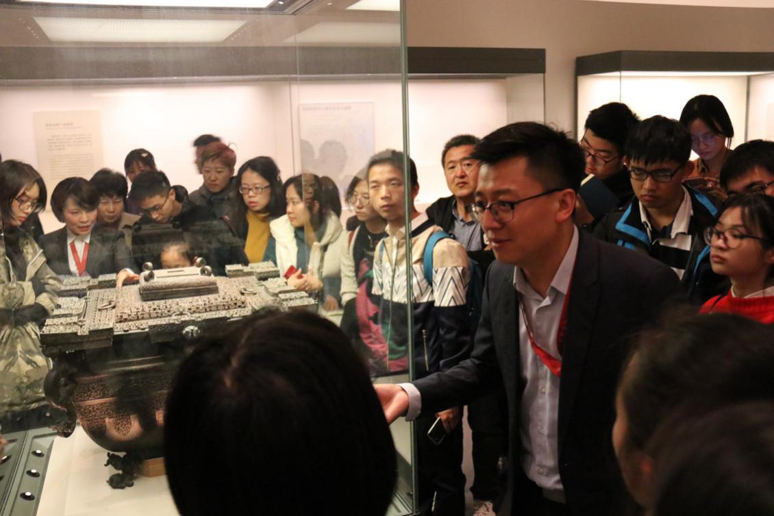(张鹏老师带领大家参观青铜器)