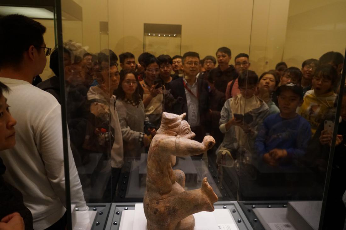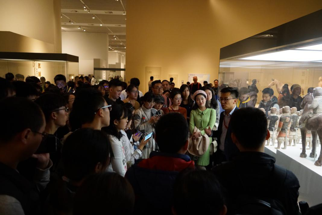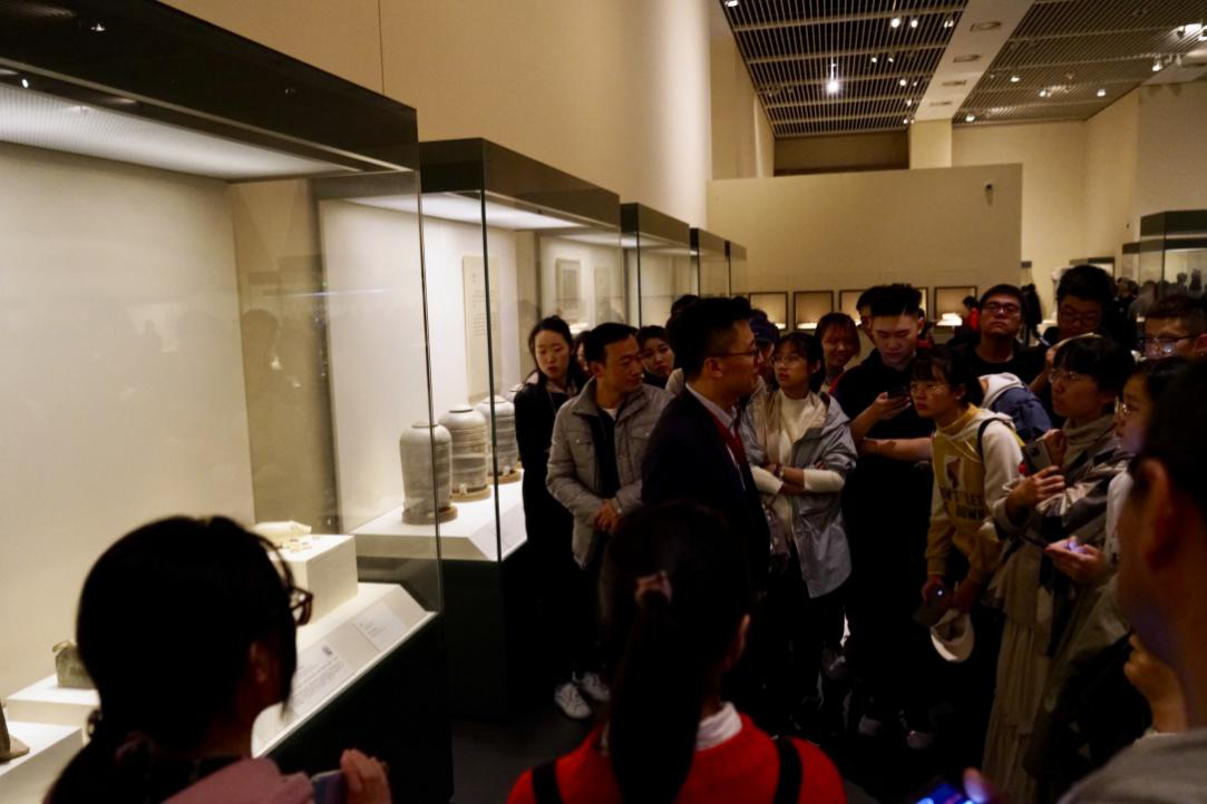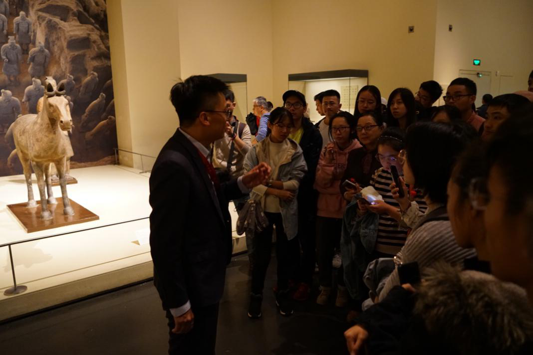 (张鹏老师带领同学们参观击鼓说唱陶俑)