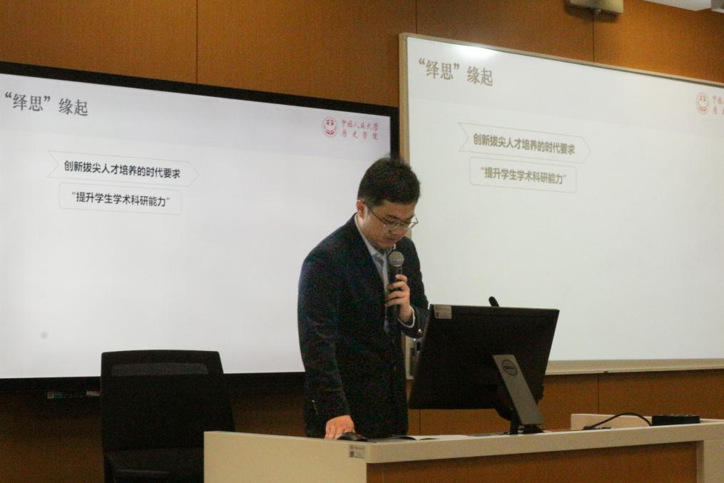 校团委书记熊宇平在致辞中谈到,“绎思”学术活动季是紧密对接学科专业教学体系、构建“大思政”格局的创新尝试,推动了本硕博贯通、课内外融合。他祝愿同学们享受学术思想的盛宴,在思维碰撞中增长才干本领;希望各级团组织不断探索在五育并举中发挥更大作用的新模式;期待学院持续发挥学科特色优势,扩大活动覆盖,为全校同学涵养历史底蕴、增强历史主动创造更好条件。