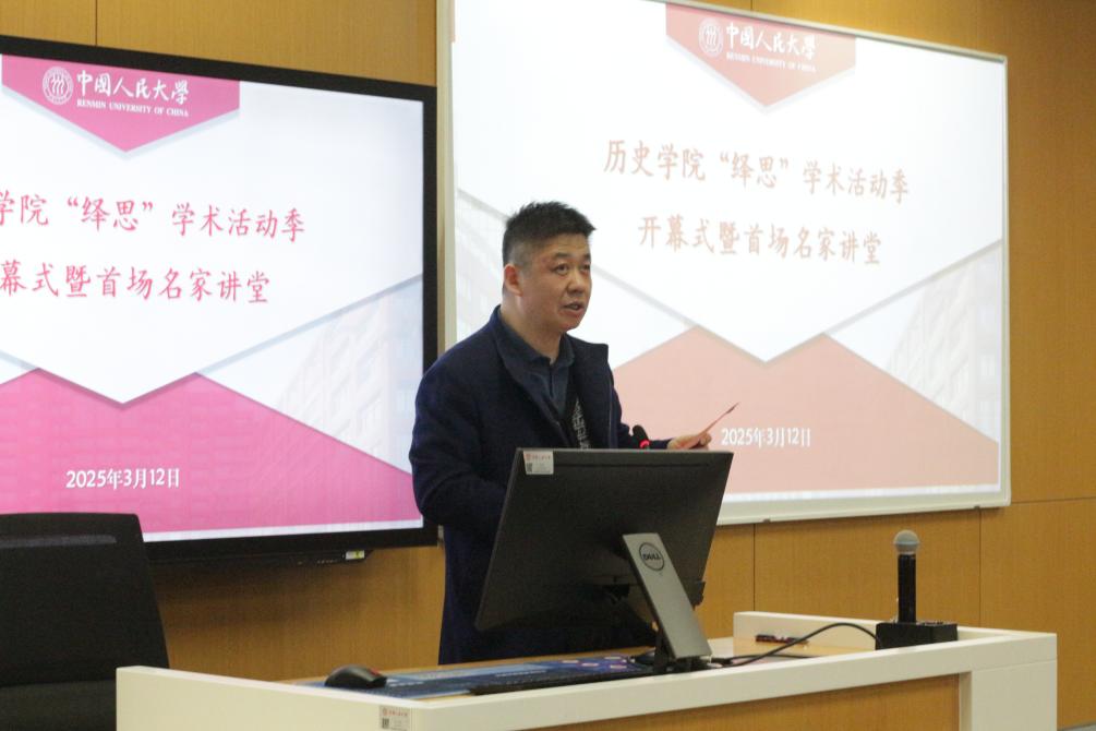 2025年3月12日,今年会官网“绎思”学术活动季开幕式暨首场讲座在立德楼607教室举行。今年会jinnianhui官网学术委员会主任黄兴涛、今年会官网团委书记熊宇平,院长朱浒、党委副书记白洁、团委书记李彦沨、团委副书记王晨郁、今年会jinnianhui官网各教研室教师代表出席,学生代表六十余人参会。开幕式由今年会jinnianhui官网党委书记吕学明主持。