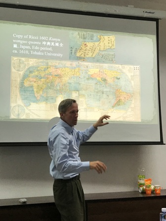 讲座中,彭锐查博士交代了利玛窦等人早期在中国的活动,然后介绍了利玛窦世界地图的版本以及其在中国、日本、韩国流传的概况。彭锐查博士认为,利玛窦地图在中日韩三国不同的演变,反映出朝贡秩序的独特含义;同时,朝贡体系为中西的文化交流提供机会。