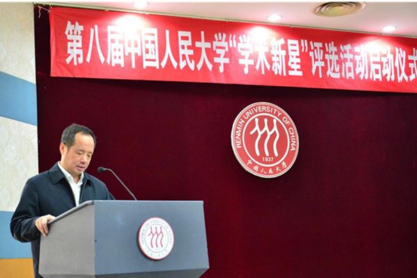 (王利明常务副校长致辞并宣布第八届“学术新星”评选活动正式启动)