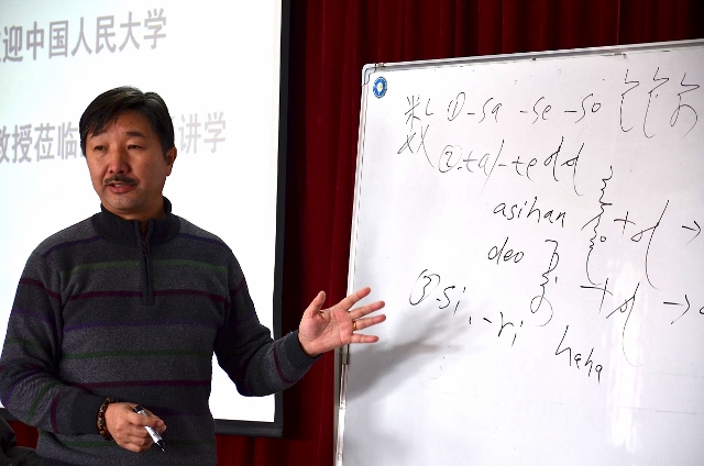 在前一天的课上,学员们纷纷要求乌云毕力格教授朗读课文,并能够现场录音以用作教学资料。教授很随和,有求必应。