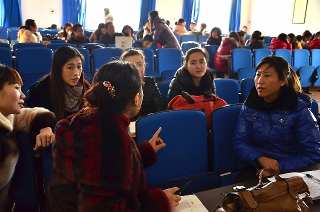 伊通从2010年起开始培养满文教学的师资队伍,每年开设一期培训班,今年已是第四期,前三期邀请东北师范大学满族历史语言文化研究中心的老师担当主讲。如今,全县共有25所乡镇中心校在五年级开设满文课,前三期的培训邀请东北师范大学满族历史语言文化研究中心的老师担任主讲。参加此次培训的,正是来自各中心校的50位小学满文教师。他们绝大部分都是三十岁左右的年轻人,女性居多,男性凤毛麟角。这个格局同全县小学教师性别比相仿。爱漂亮的姑娘们即便只是上课也打扮得时髦靓丽,连课堂氛围也被她们弄得轻松灵动。他们中有个别几位通过前三期的培训已经能够熟练地识读满文书面语,其余大部分学员在满文方面还是初学者。