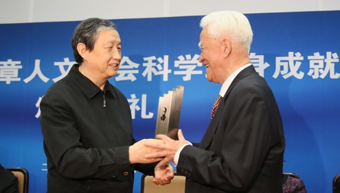 “云山苍苍江水泱泱,先生之风,山高水长。”陈雨露校长指出,吴玉章终身成就奖褒扬了一面旗帜。这首先代表了一种态度,倡呼人文社会科学与自然科学同等重要的共识,引领中国人文社会科学繁荣发展的时代潮流;其次代表了一种尊重,对于为我国人文社会科学发展作出开拓性、奠基性卓越贡献的学术大师给予崇高的荣誉和褒奖,这将有利于推动全社会对人文社会科学进一步的重视和关心。同时,更代表了一种导向,期待以此为契机,激励全国人文社会科学工作者,培养沉潜学术、薪火相传的良好风尚,作出无愧于伟大时代,更加卓越的思想贡献。