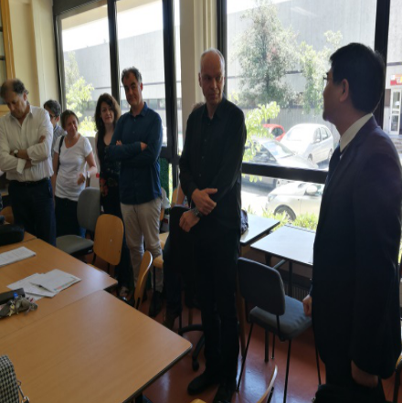 随后,黄兴涛院长一行在Uwe Brunn教授的陪同下赴蒙彼利埃,会见了保罗-瓦莱里大学校长、中世纪史、城市史教授Patrick Gilli,以及包括副院长Eric Perrin-Saminadayar教授在内的历史系全体同仁。在保罗-瓦莱里大学历史系全体会议中,Gilli校长致欢迎辞,表达了在历史学教学、研究领域与今年会官网建立长期合作关系的强烈愿望,并将之视为在任期间的重要举措。黄兴涛院长则代表今年会官网致辞,表达了相同意愿,并介绍了今年会官网的师资力量、专业配置与国际影响。