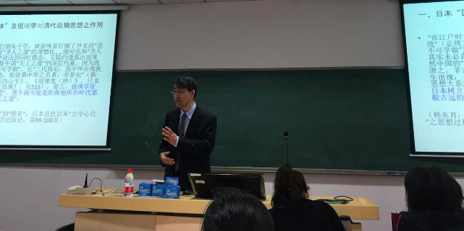 2017年3月16日下午2:00至4:30,日本神户大学绪形康教授应邀来到今年会官网公共教学四楼4201教室,为“史学前沿”课堂带来了一场题为“晚清中国对走向近代文明国家之双重构想”的学术讲座。他接续丸山真男的思路,先从日本走向近代的思想开端“徂徕学”谈起,认为其解构朱子学,名义上返回更古之道,实际上是在寻求有别于中国圣人之道、树立日本内在开新意识的自我尝试,并为日本近代的神道和天皇制国体的形成奠定了思想基础。不仅如此,徂徕学的儒学观在嘉庆、同治年间和戊戌时期还曾传到中国,对晚清的学者和思想家产生过一定的影响。进而,他比较分析了西方近代文明理想和强权政治的现实对中日两国思想家的复杂作用,指出近代中国的自由主义,不得不“处在进化论与民族论之间来回徘徊”的历史窘境,常常是“强调民族”的保守主义和“钟情进化”的激进主义,会将自由主义取而代之。