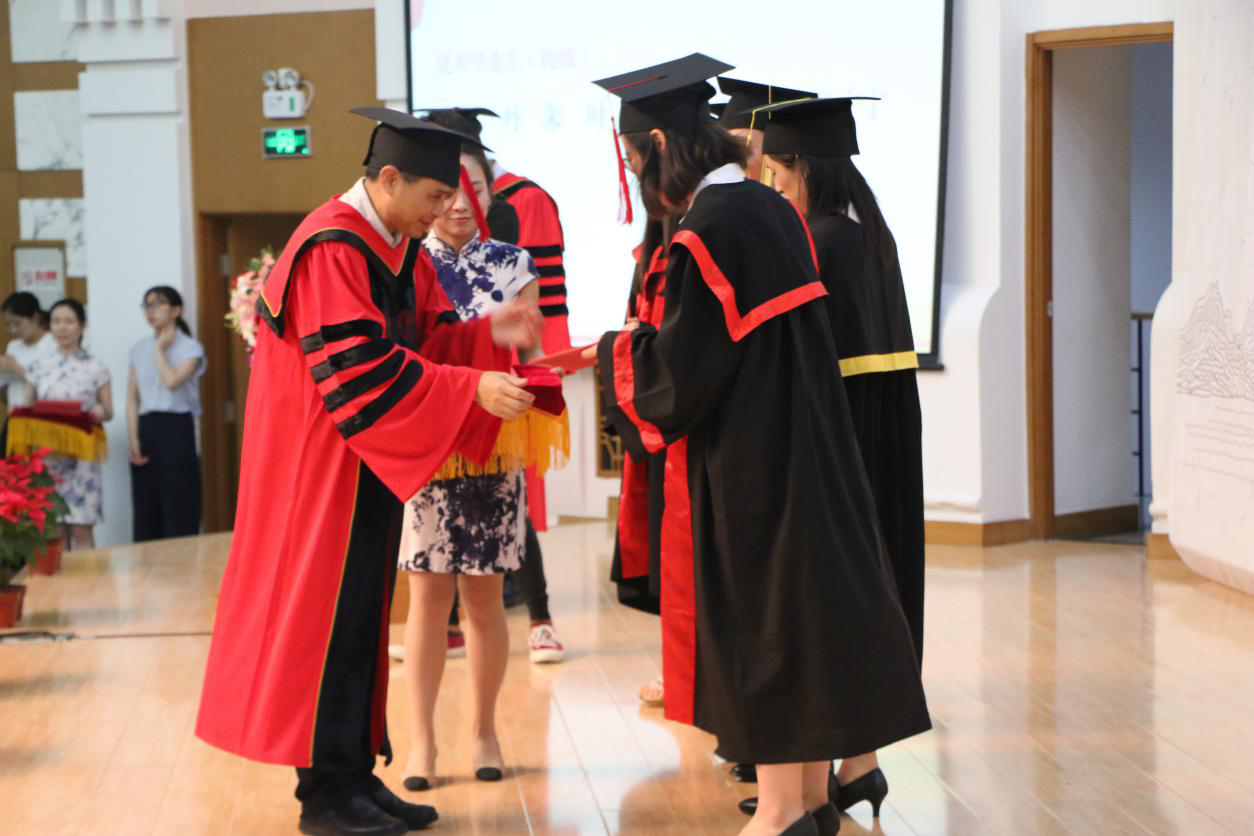 随后,黄兴涛院长宣读《关于授予硕士、学士学位的决定》,学位授予仪式正式开始。伴随着激昂而庄重的乐曲,院学位委员会委员、学术委员会委员依次为学院2018届毕业生拨穗并颁发学位证书。