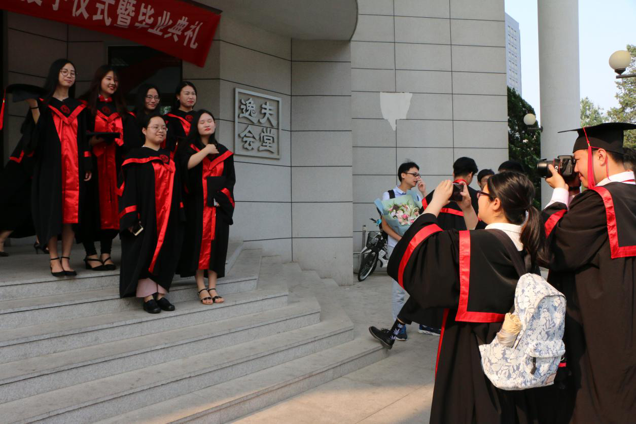 毕业典礼开始前,学校领导、教师代表等与全体毕业生合影留念。