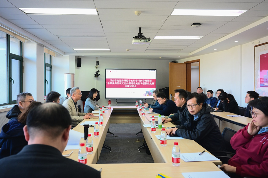 与会委员及专家学者董建中、郭双林、黄兴涛、姜萌、李梅田、刘文鹏、孙闻博、孙喆、王大庆、张林虎、白洁依次发言,围绕“中华优秀传统文化的创造性转化和创新性发展”展开研讨。