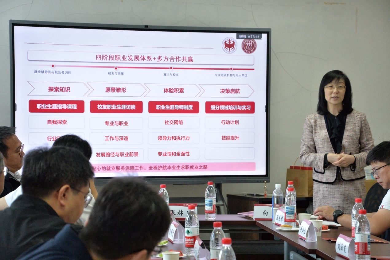 白洁就学院学生的培养情况、职业生涯规划教育与就业指导工作协同发展做介绍,诚挚邀请各位校友以自身从业经历为在校学生提供建议。