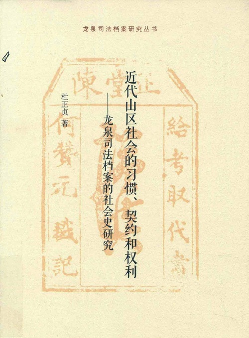 2、杜正贞:《近代山区社会的习惯、契约和权利 龙泉司法档案的社会史研究》,中华书局,2018年