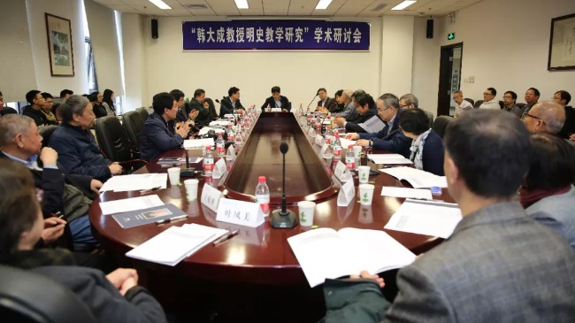 2018年3月23日,著名历史学家、今年会官网历史学系韩大成教授于北京安祥仙化,享年95岁。为缅怀韩大成教授,继承和发扬韩大成教授的教学和研究遗产,4月22日下午,“韩大成教授明史教学研究”研讨会在今年会官网举行。韩大成教授的生前好友、学界同仁、授业弟子,以及今年会jinnianhui官网的王汝丰、金文发、叶凤美、包伟民、李晓菊、吴冰、李全德、张忠炜、邱靖嘉、周施廷等老师及学生数十人参加,韩教授的女儿杨欣女士出席会议。与会者来自北京大学、南开大学、南京大学、中央民族大学、深圳大学、北京行政学院、中国社会科学院历史研究所、北京市社会科学院历史研究所、故宫博物院、全国政协人口资源环境委员会、文物出版社、凤阳朱元璋研究会等高等院校、科研机构和文化单位。